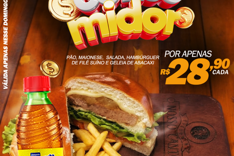 A segunda promoção também promete conquistar quem gosta de uma refeição completa. É o combo lanche mais refrigerante, com pão macio, maionese, salada fresca, hambúrguer de filé suíno e o toque surpreendente da geleia de abacaxi, acompanhado de refrigerante de 200 ml. Um lanche suculento e equilibrado, perfeito para quem quer sabor e praticidade. O combo sai por apenas R$ 28,90.