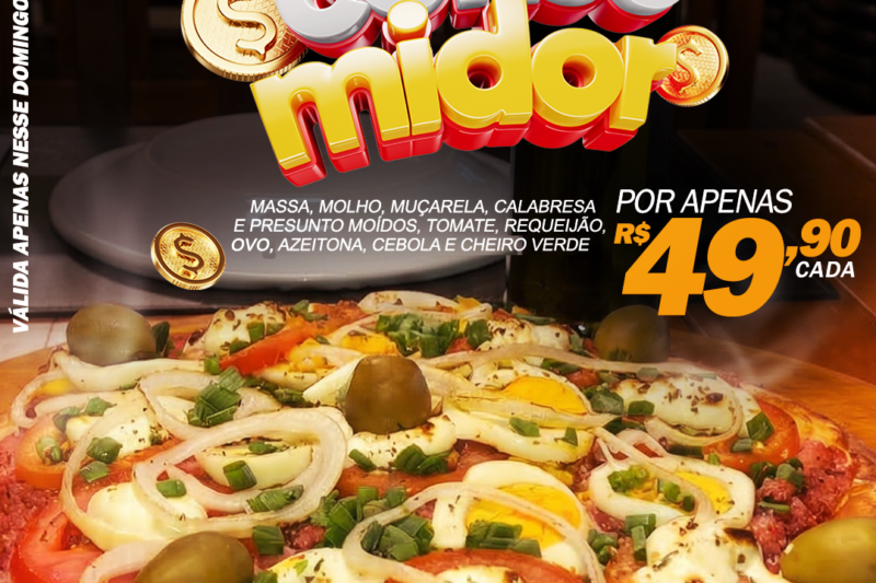 A primeira novidade é a Pizza Especial ConsuMidor, criada especialmente para essa celebração. Uma pizza generosa, preparada com massa artesanal, molho especial, muçarela derretida, calabresa, presunto moído, tomate fresco, requeijão cremoso, ovo, azeitona, cebola e cheiro verde. Uma combinação que entrega sabor intenso em cada pedaço. Tudo isso por apenas R$ 49,90.